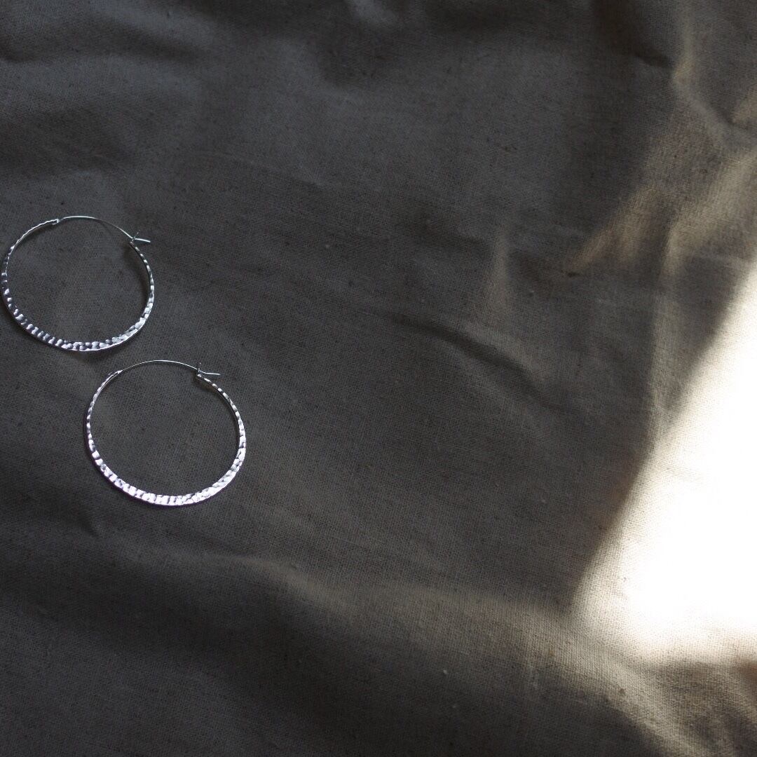 シルバー925の叩いたような細工が美しいピアス。 大ぶりながらも軽くて繊細な雰囲気なので程よくスタイルに馴染んでくれます。 デイリーにもお出かけにも◎ 素材 シルバー925